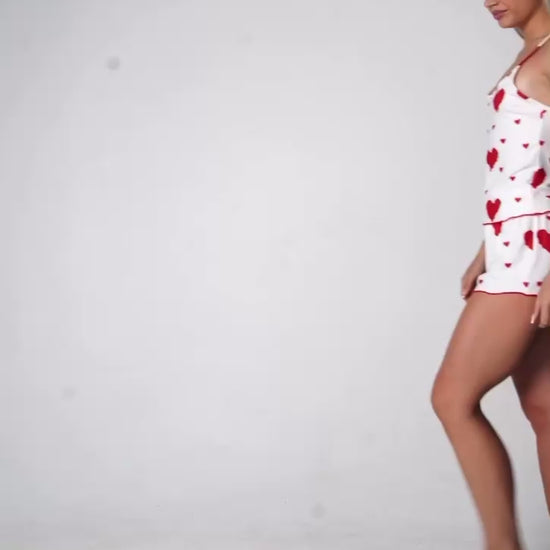 Le Pyjama Femme Cœur Amourelys combine un débardeur à fines bretelles et un short fluide pour un look sexy et confortable, même à la maison.